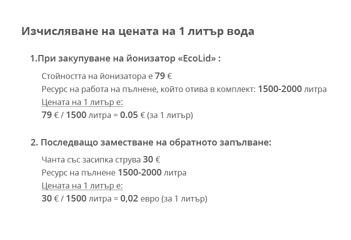 Ние изчисляваме на базата на цената на йонизатора (с попълване на комплекта) и разходите за последваща подмяна на таксата.